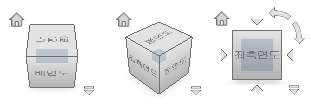 ViewCube를 클릭하여 끌면 사용 가능한 26개의 사전 정의된 관측점 중 하나가 아닌 다른 사용자 관측점으로 모델의 뷰 방향을 전환할 수도 있습니다. 마우스를 끌면 포인터가 변경되어 모델의 현재 뷰 방향을 전환하고 있음을 나타냅니다. ViewCube를 사전 설정 방향 중 하나 가까이로 끌고 가장 가까운 뷰로 스냅하도록 설정되어 있으면 ViewCube가 가장 가까운 사전 설정 방향으로 회전합니다.