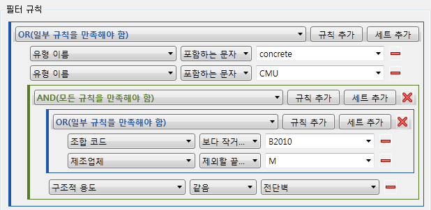 필터 규칙에 여러 레벨의 내포가 포함된 경우 적절한 규칙 세트에 대해 세트 추가를 클릭해야 합니다.
