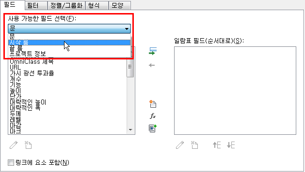 - 프로젝트 탐색기에서 일람표를 선택합니다.