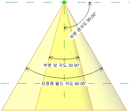 스폿라이트를 정의할 때 보, 필드 및 기울기 각도를 지정할 수 있습니다.