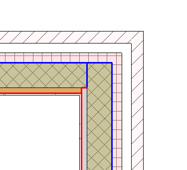 재지정을 적용할 수 있는 호스트 요소는 벽, 지붕, 바닥 및 천장입니다. 선 두께, 선 색상 및 선 패턴을 구조, 하지재, 단열/공기, 마감재 1 및 마감재 2의 각 레이어 기능에 지정할 수 있습니다. 또한 선이 다른 기능의 두 레이어에 공통적인 경우, 공통 모서리의 선 스타일을 제어할 수도 있습니다. 펜 두께가 같은 선 스타일로 두 레이어를 그리면 공통 모서리에 지정된 특성이 사용됩니다.