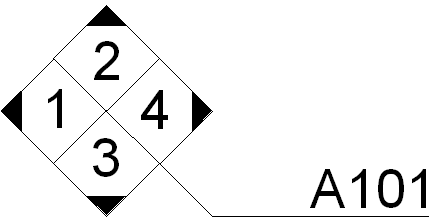 태그 본체를 기준으로 원하는 방향을 가리키는 여러 화살표 및 모양이 있는 입면 태그를 작성할 수 있습니다. 사용자 입면 태그를 작성하려면 사용자 태그 본체 패밀리에 사용자 포인터 패밀리를 내포합니다.