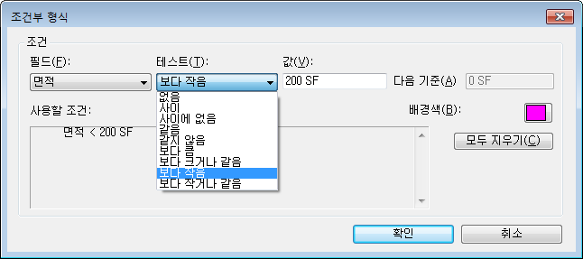 주: 형식을 지정할 필드는 이 대화상자에서 선택해야 합니다. 조건부 형식 대화상자에서 새 필드를 선택할 경우 새 조건을 지정하는 것이 아니라 3단계에서 선택한 필드에 조건을 추가하는 것이 됩니다.