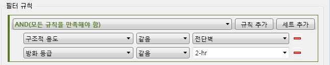 OR (구조적 용도 = "전단" AND 방화 등급 = "2시간")
