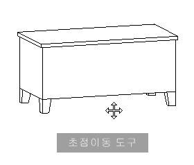 초점이동 도구가 활성 상태인 경우 초점이동 커서(4면 화살표)가 표시됩니다. 포인팅 장치를 끌면 모델이 같은 방향으로 이동합니다. 예를 들어 위로 끌면 모델이 위로 이동하고, 아래로 끌면 모델이 아래로 이동합니다.