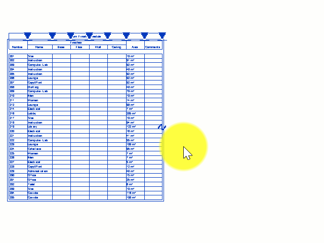 파랑 컨트롤을 사용하면 일람표를 이동하고 조작할 수 있습니다. 오른쪽 경계 중간의 Z 끊기 컨트롤이 일람표를 분할합니다.
