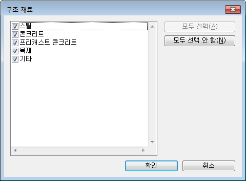 표시할 각 재료를 선택한 후 확인을 클릭합니다. 기본적으로 모두 선택되어 있습니다.