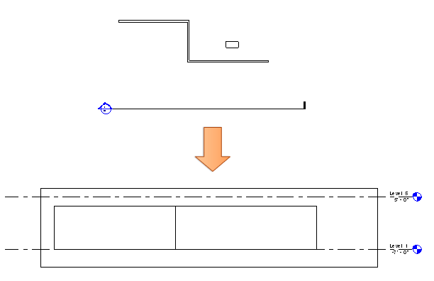 다음 예에서는 단면을 분할하는 예를 보여주지만 동일한 방법을 입면에도 사용할 수 있습니다. 다음 그림은 모델에 그린 일반적인 단면입니다.