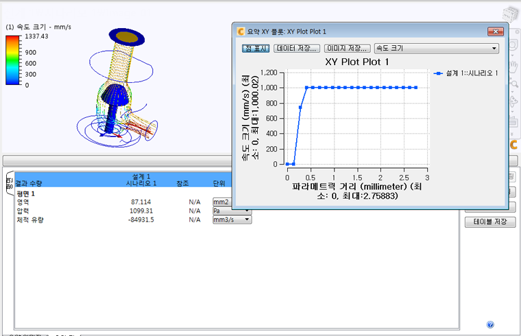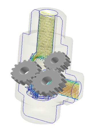 흐름 제어 시뮬레이션은 일반적으로 유체가 장치를 통해 흐르는 방식과 압력 강하 또는 유량을 보여 줍니다.