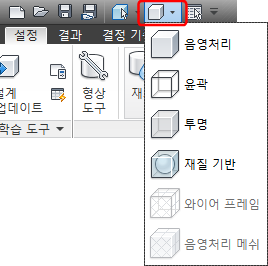 모형을 윤곽 또는 투명 상태로 표시하려면 신속 접근 도구막대의 비주얼 스타일 메뉴에서 선택합니다.