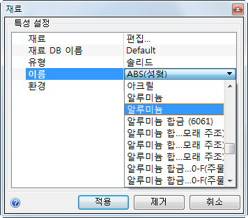 5. 이름 메뉴에서 알루미늄을 선택합니다.