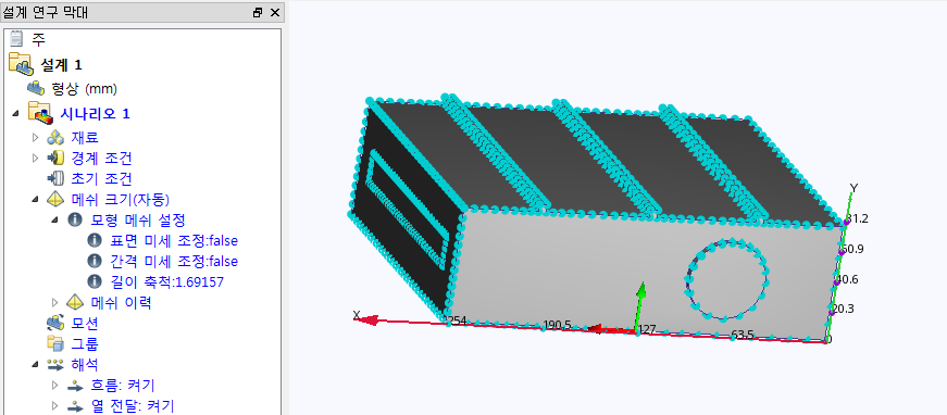 이 단계에서는 메쉬 분포를 자동으로 구성합니다.