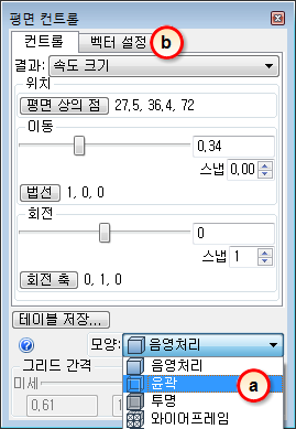 평면 컨트롤 대화상자에서 다음 작업을 수행합니다.
