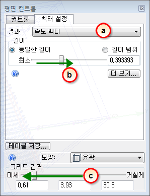 벡터 설정 탭에서 다음 작업을 수행합니다.