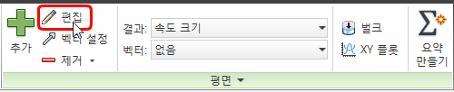 5. 색상에는 문제가 없지만 흐름을 제대로 이해하기 위해 벡터가 필요합니다. 벡터를 표시하려면 결과 (탭) > 결과 작업 (패널) > 평면을 클릭하고 평면 상황에 맞는 메뉴에서 편집을 클릭합니다.