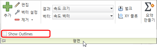 7. 평면 상황에 맞는 패널의 드롭다운 메뉴에서 윤곽 표시를 선택해제합니다.