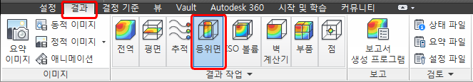2. 결과 > 결과 작업 >등위면을 클릭하여 등위면을 작성합니다.