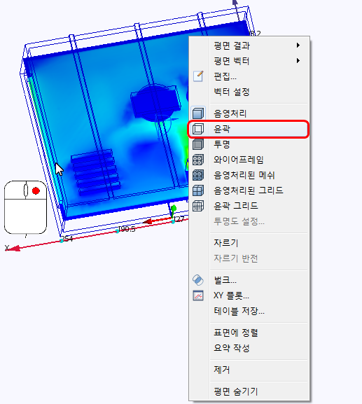 이제 엔클로저의 외부 표면을 살펴보겠습니다. 현재 결과는 속도 크기이고 벽의 속도가 0 in/s이므로 파란색으로 나타납니다.