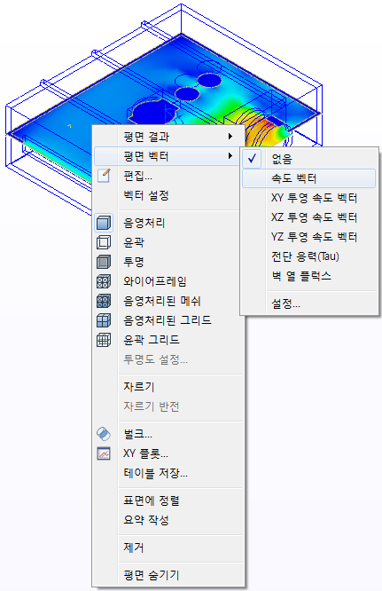 4. 평면에 벡터를 표시하려면 마우스 오른쪽 버튼을 클릭하고 평면 벡터를 선택합니다. 속도 벡터를 클릭합니다.