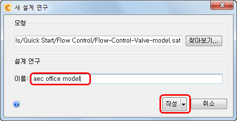 4. 새 설계 연구 대화상자에서 이름에 이름을 입력하고 버튼 옵션이 작성으로 설정되어 있는지 확인한 후 작성을 클릭합니다.