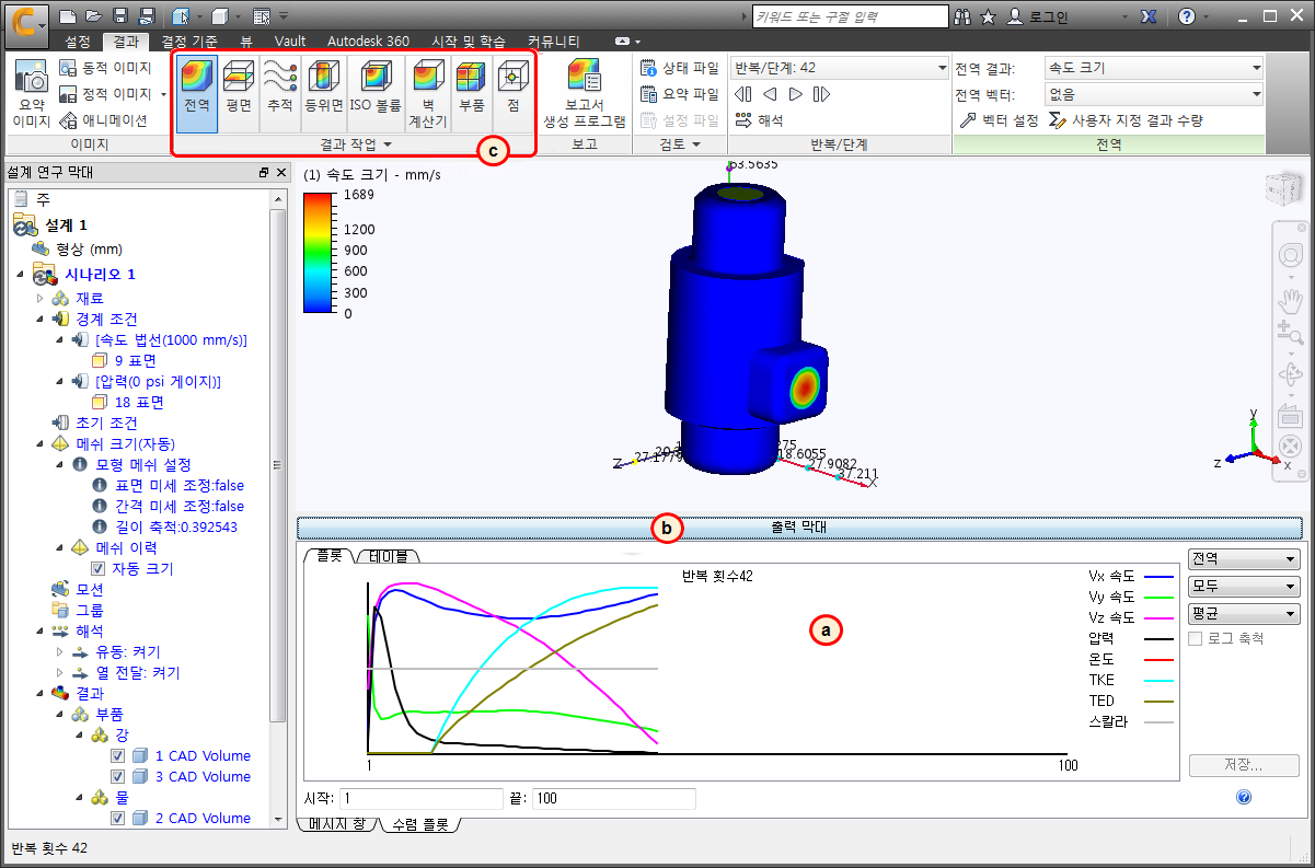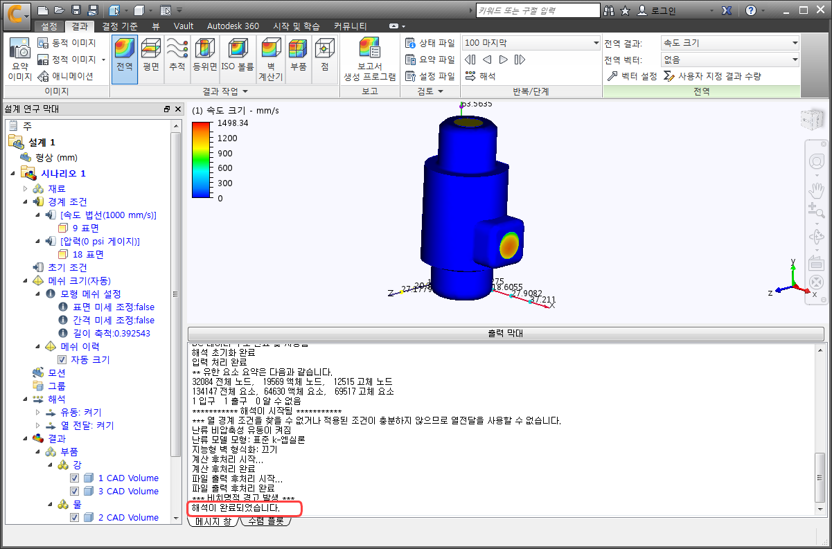 이 단계에서는 밸브 내부의 흐름 시뮬레이션을 시작합니다. 시뮬레이션 실행을 시작하고 완료하기까지 약 5-7분이 걸립니다.