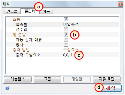 2. 열 전달 및 중력 벡터를 사용으로 설정한 후에 다음과 같이 시뮬레이션을 시작할 수 있습니다.
