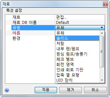 4. 재료 빠른 편집 대화상자에서 재료 유형을 선택합니다.