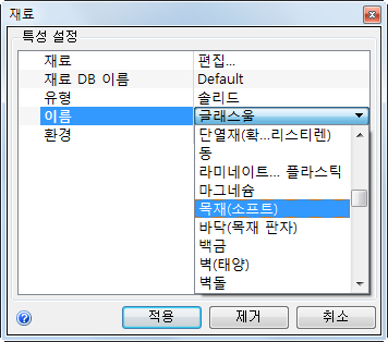 5. 이름 메뉴에서 목재(소프트)를 선택합니다.