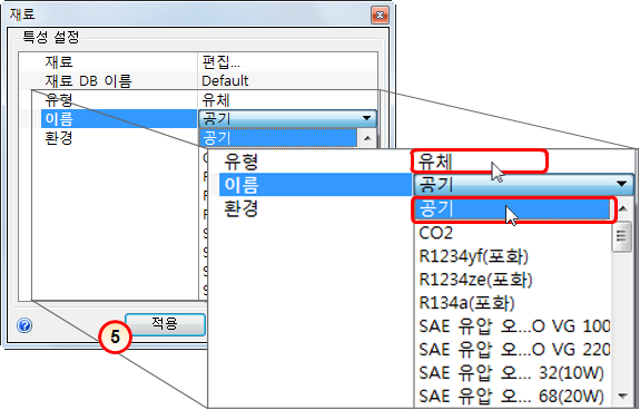 이 단계에서는 내부 흐름 체적에 공기를 지정합니다.