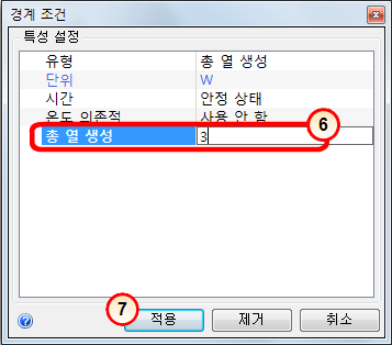 5. 유형이 총 열 생성으로 되어 있고, 단위가 W(와트)로 설정되어 있는지 확인합니다.