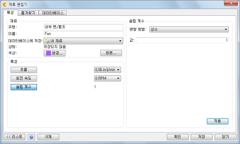 재료 빠른 편집 대화상자를 열려면 재료 상황에 맞는 메뉴에서 편집을 클릭합니다.