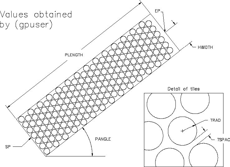 ' Acquire the information for the garden path Private Sub gpuser() ' Defines a local variant variable Dim varRet As Variant ' Prompt the user for the start point of the path's centerline varRet = ThisDrawing.Utility.GetPoint( , "Specify start point of path: ") sp(0) = varRet(0) sp(1) = varRet(1) sp(2) = varRet(2) ' Prompt the user for the endpoint of the path's centerline varRet = ThisDrawing.Utility.GetPoint(sp, "Specify endpoint of path: ") ep(0) = varRet(0) ep(1) = varRet(1) ep(2) = varRet(2) ' Prompt for half of the path's width hwidth = ThisDrawing.Utility.GetDistance(sp, "Specify half width of path: ") ' Prompt for the radius of a tile trad = ThisDrawing.Utility.GetDistance(sp, "Specify radius of tiles: ") ' Prompt for the spacing between the tiles tspac = ThisDrawing.Utility.GetDistance(sp, "Specify spacing between tiles: ") ' Calculate the angle from the axis pangle = ThisDrawing.Utility.AngleFromXAxis(sp, ep) ' Multiple by two for the total width of the path totalwidth = 2 * hwidth ' Calculate the distance of the path plength = distance(sp, ep) ' Calculate the angle of the path plus or minus 90 degrees angp90 = pangle + dtr(90) angm90 = pangle - dtr(90) End Sub