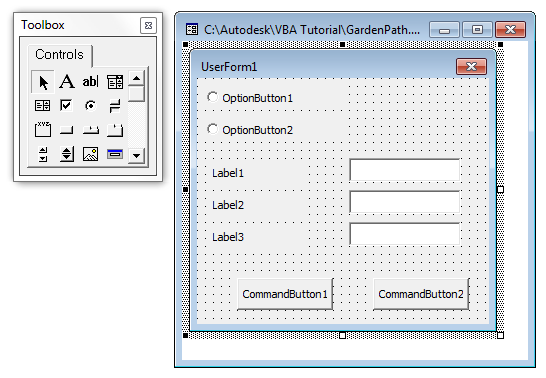 In the following steps, you learn to insert a UserForm object into the GardenPath project and then add controls to it.