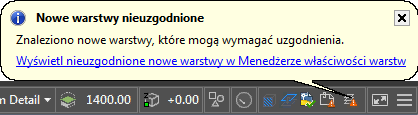 Przed wykonaniem pewnych zadań, takich jak drukowanie, zapisywanie lub przywracanie stanu warstwy użytkownik może być informowany, kiedy nowe warstwy dodawane są aktualnego rysunku lub jednego z dołączonych do niego odnośników zewnętrznych. W ten sposób można uniknąć potencjalnych problemów, takich jak drukowanie obiektów, które zostały dodane do rysunku poprzez dodanie nowej warstwy. Użytkownik może kontrolować kiedy, jeżeli w ogóle, rysunek jest oceniany pod kątem nowych warstw. Użytkownik może określić, które polecenia, jak np. ZAPISZ lub WYDRUK, wymuszają na oprogramowaniu sprawdzenie listy warstw i ostrzeżenie w przypadku wystąpienia nowej warstwy. Polecenie to może zostać ograniczone do nowych warstw, które zostały dodane do dołączonych odnośników zewnętrznych lub obejmować warstwy na aktualnym rysunku i dołączonych odnośnikach zewnętrznych.