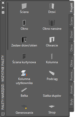 | Paleta narzędzi | Narzędzia obróbki ścian kurtynowych |