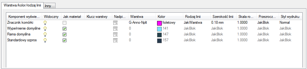 - Kliknij zakładkę Inny, aby dodać definicje kolejnego elementów. Po dodaniu wszystkich elementów kliknij dwa kolejne przyciski OK.