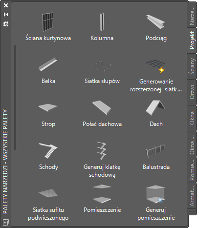 Palety użytkownika utworzone przez menedżera CAD lub innych użytkowników mogą także zawierać style i właściwości balustrad dostosowane do tworzonych projektów lub standardów obowiązujących w danym biurze.