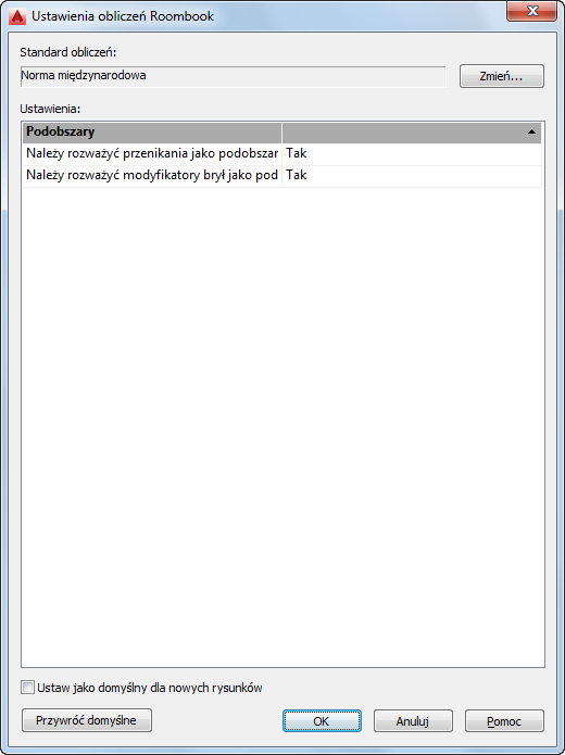 Program Roombook zawiera krajowe standardy obliczeń: