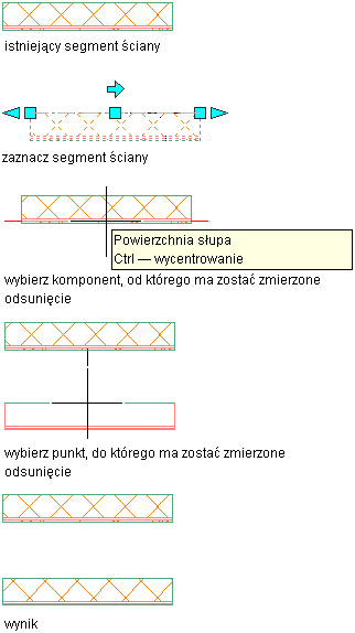 | odsunąć ścianę od powierzchni komponentu ściany | przesuwaj kursor nad ścianę, aż powierzchnia żądanego komponentu zostanie podświetlona czerwoną linią, i kliknij raz. |