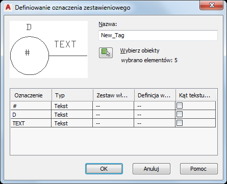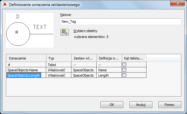 Procedura ta umożliwia utworzenie oznaczenia zestawieniowego, które zawiera dane zestawu właściwości wyświetlania dla konkretnego obiektu na rysunku.