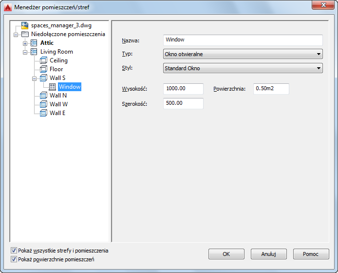 2. Upewnij się, że zaznaczona jest opcja Pokaż powierzchnie pomieszczeń.