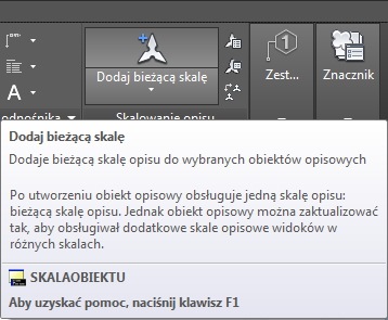 Krótki opis zostanie wyświetlony zawsze po zatrzymaniu wskaźnika na poleceniu w następujących miejscach: