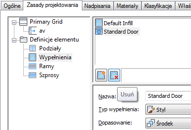 Usuwanie wypełnienia panelem z zestawu drzwi/okien