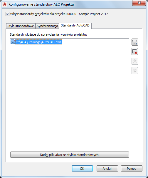 Procedura ta umożliwia ustawienie standardów AutoCAD dla projektu.