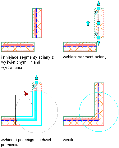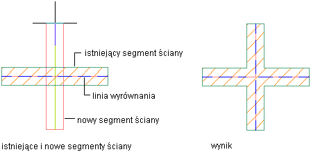 Linie wyrównywania ściany i łączenie ścian w miejscu przecięcia ścian