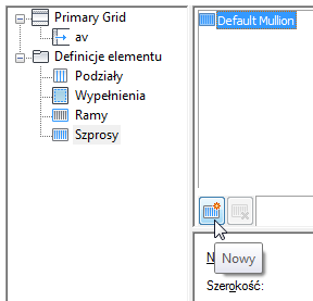 Po utworzeniu definicji szprosu można ją przypisać dowolnemu szprosowi zestawu drzwi/okien.