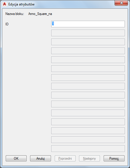 Ta procedura służy do edycji opisu bazującego na bloku lub zmiany jego właściwości typograficznych i innych właściwości za pomocą okna dialogowego Edytuj atrybuty.