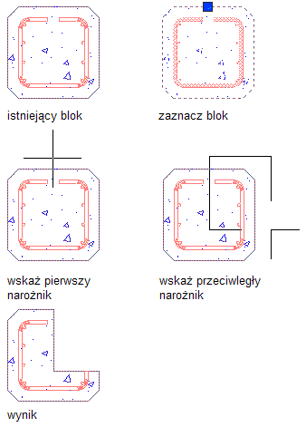 Odejmowanie części bloku przez określenie narożników prostokąta.