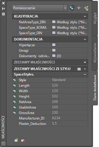 - Na palecie właściwości kliknij zakładkę Dane dodatkowe.