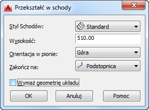 Procedura ta służy do tworzenia schodów użytkownika na bazie profili stopnicy. Do utworzenia stopnic schodów użytkownika należy użyć zdefiniowanych profili wygenerowanych z zamkniętych polilinii. Wszystkie profile stopnic w każdych schodach muszą się przecinać lub nakładać.